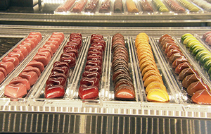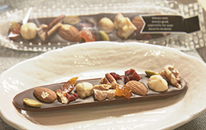 色形味、バラエティに富んだボンボンショコラは24種類。ナッツとドライフルーツたっぷり、マンディアンも人気。テイクアウトドリンクも。