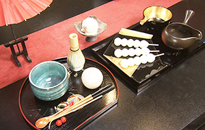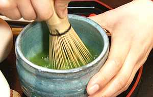 テーブルの小さなコンロでじっくりと、そして焼けるまでの間、お抹茶を点てて待つのも楽しみの一つです。