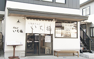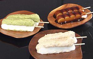 だんごはササニシキで作ります。繰り返し蒸してつぶしてすり出すことで、歯切れよく滑らかな食感に。