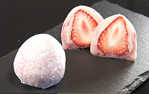 季節の大福もおすすめ。いちご大福は感動する果肉のジューシーさ。餡と餅のとろけるやわらかさが自慢です。