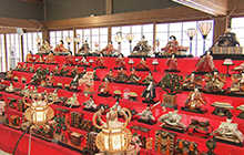 市民から寄贈されたもので 幅8mほどのひな壇の豪華七段飾り。市内の武家屋敷や旧小関家に伝わるおひなさまも飾られています。