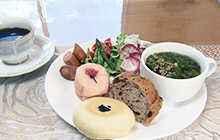 今は桜の香りが春を感じる手作りの桜あんぱん等、3種類のパンとスープ、サラダのワンプレートランチがおすすめ。