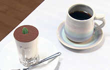 やわらかでしっとりしたずんだシフォンもおすすめ。こちらには深煎りのインドネシアがよく合うそうです。