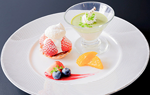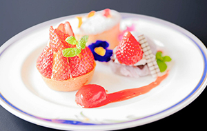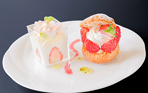 「桜香るパンナコッタと仙台苺のカスタードシュー」