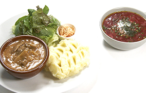 ビーフストロガノフやお魚の料理など家庭の味が楽しめます。