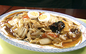 名物はジャンボ焼きそばシリーズ。なかでも自家製麺が420g、総重量1㎏のボリュームの広東焼きそばは人気のメニュー。