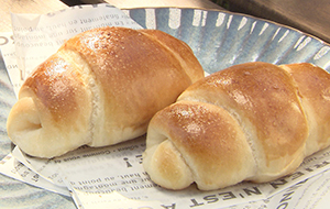 塩パンは生地がほんのり甘くてふわふわ、底はカリッ、岩塩の程よい塩味が美味。