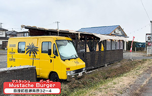 黄色いボディに黒いおヒゲが目印のキッチンカー。手作りバンズにジューシーパティ、オリジナルソースのバーガーを提供しています。