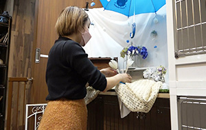 金井さんは、ドッグサロンで行われるプロカメラマンによる撮影会用フォトブースのデコレーションを担当。季節の花やテーマによって、その世界観をつくりあげています。