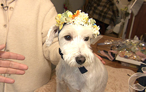 また、ワンちゃん用のヘッドアクセサリーも手作り。アーティシャルフラワーと呼ばれる造花を使うことで、生花では出せない耐久性と芸術性が特徴です。
