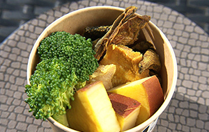 ササミやビーフジャーキー、ブロッコリーやドライフード加工のサツマイモなど歯ごたえのあるものなども入って大満足。クミンなどのスパイスがアクセントです。