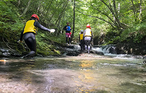 沢をくだったり滝をのぼってみたり、山の空気をいっぱいに吸い込み、ひんやり沢の水に飛び込む、まさに自然と一体となり楽しむアクティビティです。