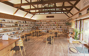 木を基調としたゆったりできる空間に多くの人が集いました。棚に並ぶ蔵書は寄贈されたものなど約3000冊、おもいおもい本を楽しめます。