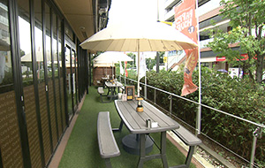 こちらのテラス席はわんちゃん連れOK。2年前からはわんちゃんメニューも提供しています。