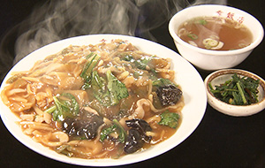 ザーサイがよいアクセントになっているザーサイ肉絲焼きそばは先代から受け継いでいるメニューです。若いお客様にももっと足を運んでほしいとがっちりメニューも!