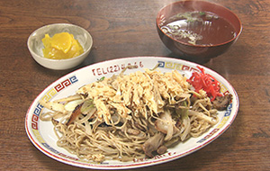 推しは焼きそば。弱ちぢれの麺の絶妙な食感、チャーシューもゴロゴロ入り、上には卵焼きがのった他にはない焼きそばです。