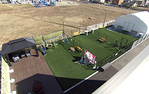水はけのよい人工芝の屋外も気持ちいいですが、雨や冷え込む日にはあたたかい大型テント内ならワンちゃんのみならず飼い主さんもうれしい、充実のドッグランです。