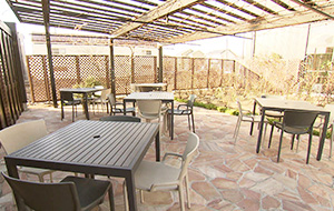 テラスには数種類のバラが植えられており、花が咲く季節はバラの香りに包まれるようなテラス席はワンちゃんと一緒にゆったり過ごすことができます。