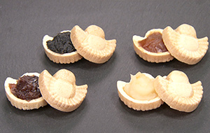 小さな小さなすずめたちにたっぷり餡がつまった「仙台娘すずめモナカ」粒あん・黒ごま・仙台味噌・ゆずです。