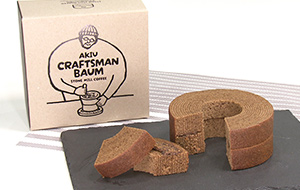 石臼をイメージ、アーモンドチョコレートを混ぜた特製クリームをサンド「AKIU CRAFTMAN BAUM-STONE MILLCOFFEE 1,454円」