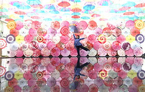 色とりどりの傘が飾られ、水面に映り幻想的な空間が広がっています。まるで水面を歩いているような写真撮れちゃいますよ。