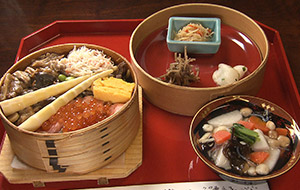 わっぱ飯やこづゆなど会津の味が楽しめます。わっぱ飯は桧を曲げた器に米と様々な食材を入れて蒸し上げた会津の代表的な郷土料理のこと。
