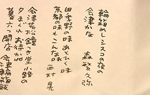 箸袋には来客者が残した川柳が…俳優として活躍した森繁久彌さんの川柳も載っているそう。