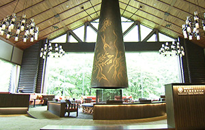 その渓流沿いに建つ「奥入瀬渓流ホテルby星野リゾート」。まるで美術館のようなロビーが非日常へいざないます。