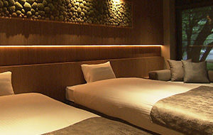“渓流と過ごす、ごほうび。”がテーマの「渓流スイートルーム」はラグジュアリーな客室。部屋に温泉もあります。