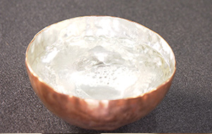 銅板に熱を加えて再びやわらかくして加工しやすい状態に戻し、また成形、これを4~5回繰り返します。