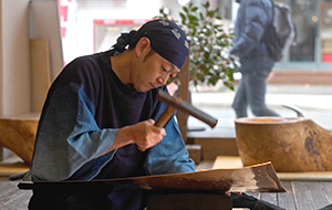 さらに、当金(あてがね)をあてながら木槌で外側を叩いて表面をなめらかに整えます。